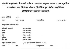 समानुपातिकबाट आएका कूल महाधिवेशन प्रतिनिधिमध्ये खस/आर्यबाट ३१.९ प्रतिशत प्रतिनिधित्व हुन्छ । यस्तै आदिवासी जनजातिबाट ३०.२ प्रतिशतले हुन आउने ४ सय ९८ जना महाधिवेशन प्रतिनिधि चुनिनेछन् । दलितबाट २ सय ३२ जना चुनिनेछन् । जुन १४.१ प्रतिशत प्रतिनिधित्व हुन्छ । मधेशी समुदायबाट २ सय २७ जना प्रतिनिधि चुनिनेछन्। यो १३.८ प्रतिशत सहभागिता हो । थारू समुदायबाट ५.७ प्रतिशतले हुन आउने ९४ जना प्रतिनिधि चुनिनेछन् । यस्तै मुस्लिम समुदायबाट ७२ जना महाधिवेशन प्रतिनिधि चुनिनछन् । जुन ४.४ प्रतिशत हुन आउँछ ।