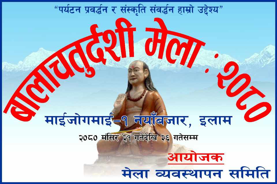 इलाम । इलामको माइजोगमाई गाउंपालिकाको केन्द्र नयांबजारमा आज देखि बालाचतुर्दशी मेला शुरु भएको छ । धामिइक एवम् पर्यटकिय मेला आज देखि खशुरु भई मंसिर २६ गते सम्म लाग्ने आयोजकले बताएका छन । इलाम जिल्लाको एक पर्यटकिय क्षेत्रको रुपमा बिकास हुंदै गरेको नयांबजारमा बर्षेनि बालाचतुर्दशीको अवसरमा मेला लाग्ने गरेको छ । यो मेलामा स्थानीय स्थरमा उत्पादन हुने वस्तुहरुको प्रदर्शन,स्थानीय खानपान, स्थानीय कला संस्कृति प्रदर्शन गरीने मेला व्यवस्थापन समितिकी अध्यक्ष पुनम गुरुङले बताईन ।