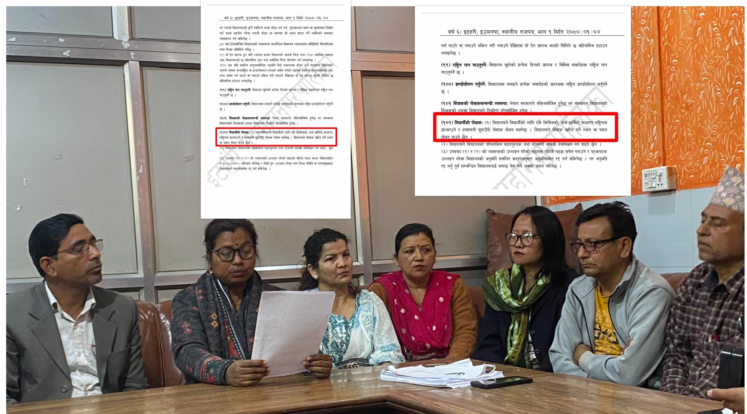सो ऐनको धारा १०२ मा “विद्यार्थीको पोसाक विद्यालयले कम खर्चिलो, साधारण, राष्ट्रियता झल्काउने र हावा पानी सुहाउँदो पोसाक तोक्न सक्ने छ” भनी लेखिएको छ । चौधरीले भनिन्,“अहिले नगर प्रमुख पौडेलले सो धारालाई नै तोडमोड गर्नु भएको छ । यस बारेमा न मलाई थाहा छ न कार्यपालिकालाई नै ? ”