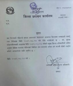 विज्ञप्तिमा सुरक्षा संवेदनशीलताको आधारमा भदौ २६ गतेको प्रमुख जिल्ला अधिकारीको आदेश अनुसार विभिन्न स्थानमा तोकिएको निषेधित क्षेत्रसम्बन्धी आदेश भने कायमै रहेको जनाइएको छ ।